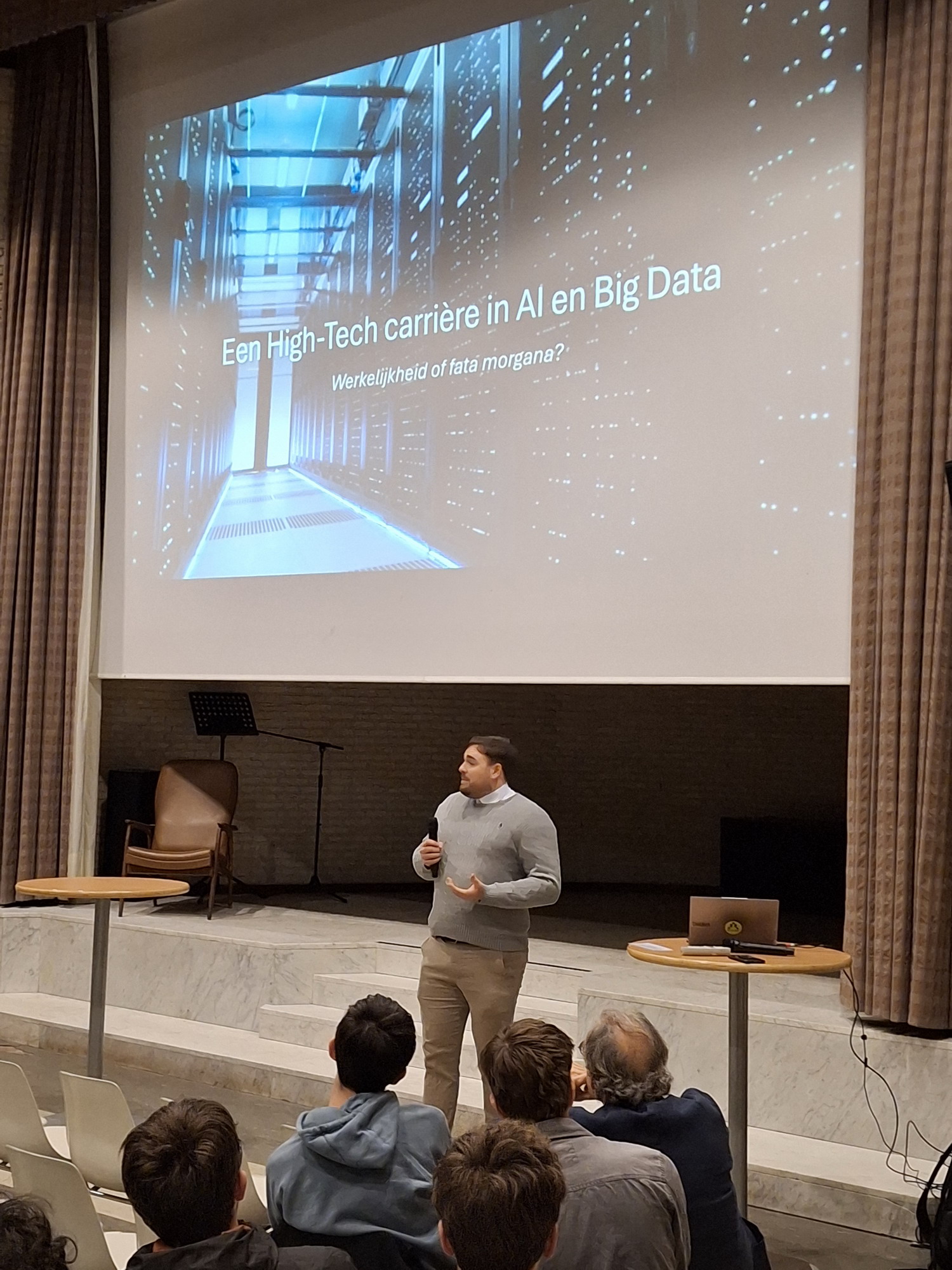 Woensdag kregen onze zesdejaars een boeiende gastlezing over Artificial Intelligence (AI) en Data Analytics (DA) in het Groot Auditorium. Tijdens het derde en vierde lesuur nam gastspreker Daan Van Rossem, Business Development Manager bij Acumen, de leerlingen mee in de snel evoluerende wereld van data en slimme technologie.